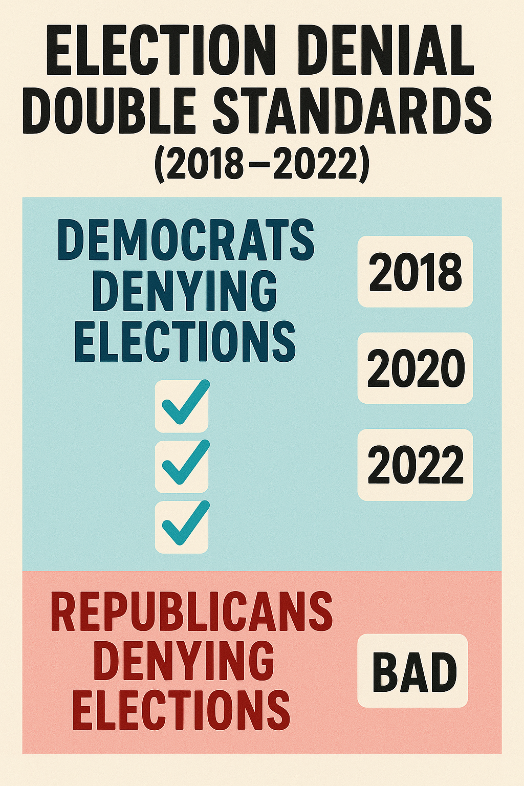 Prominent Dems disputed election outcomes (e.g. Stacey Abrams, Hillary Clinton) while decrying GOP “election deniers”fox11online.comfox32chicago.com.